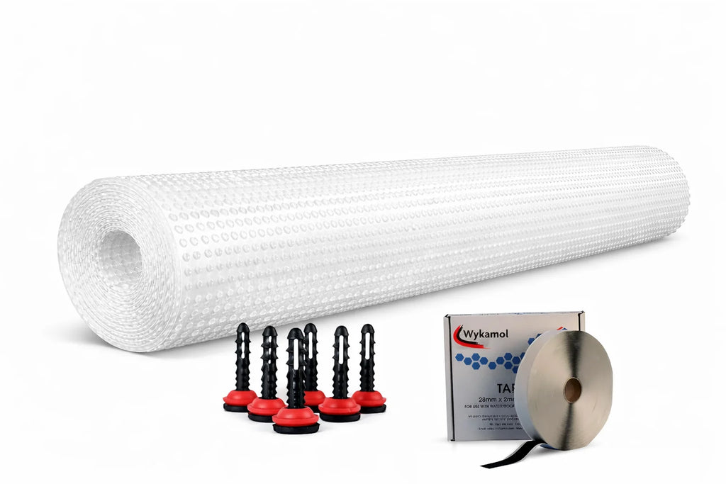 The Wykamol CM3 Waterproof Membrane Kit is a 3mm studded cavity drain membrane system designed for both basement waterproofing (below ground) and damp proofing (above ground) applications.