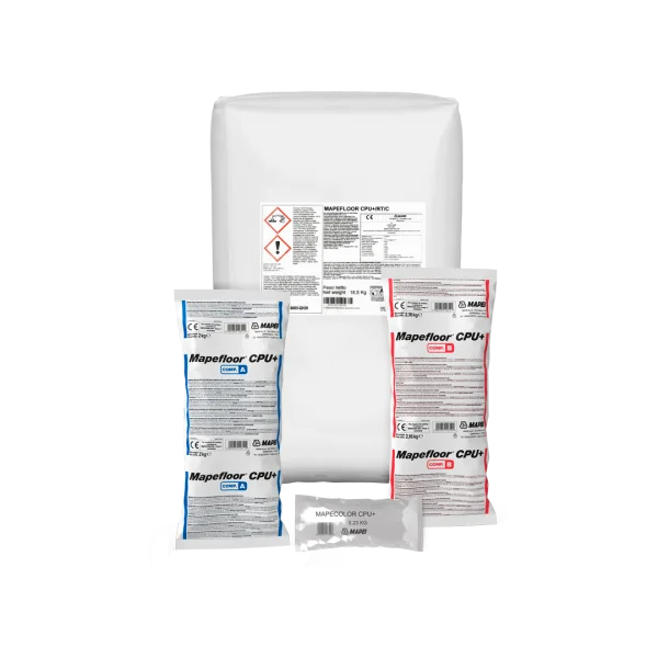 Packaging: Comp. A 2 kg, B 2.16 kg, C 18.5 kg, Mapecolor CPU+ 0.23 kg