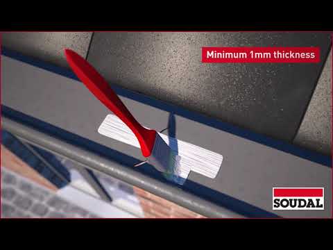 Solvent free Waterproof Protective Coating suitable for a broad range of applications from roof & gutter repair to general sealing and protection of interior and exterior joints, gaps and cracks. Can be reinforced with Soudatextile between two layers of the liquid coating.