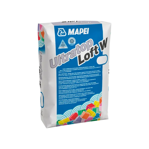 ULTRATOP LOFT W is a one-component, fine-textured cementitious paste designed to create elegant, decorative coatings for floors and walls with a trowelled or nuvolato (mottled) effect. Part of the ULTRATOP LOFT system (used with ULTRATOP LOFT F), it delivers a smoother, refined finish that complements the more coarse-textured base layer.